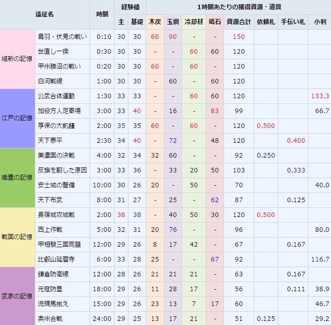 远征收益可参考下图(日服版,转自网络)