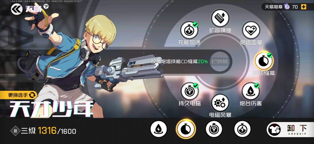 技能减CD这个天赋实在是完美的解决了我们炮塔不够用的问题,因为我们的炮塔血量比较低(我点了加血的)很容易炸了,所以这个必带