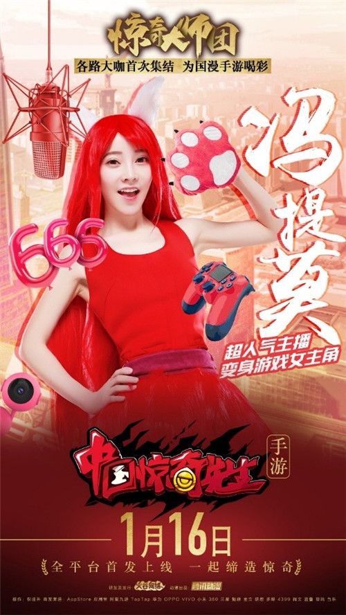 超人气主播冯提莫重磅加盟《中国惊奇先生》手游惊奇大师团,除了出任惊奇形象大使与主演主题曲MV外,更会给玩家送上超豪华的游戏大礼包!那么除了小孩和冯提莫之外,其他的三位大师团成员又是谁呢?他们会为玩家送上怎样的精彩内容?让我们一起静待揭晓。同时,《中国惊奇先生》手游1月16日全平台首发上线预约活动正在火爆进行,千万不要错过!