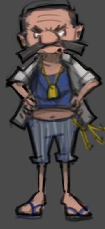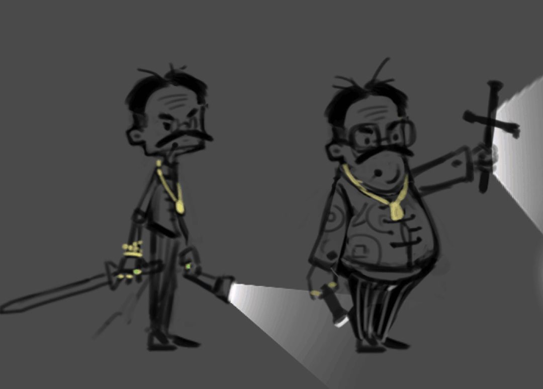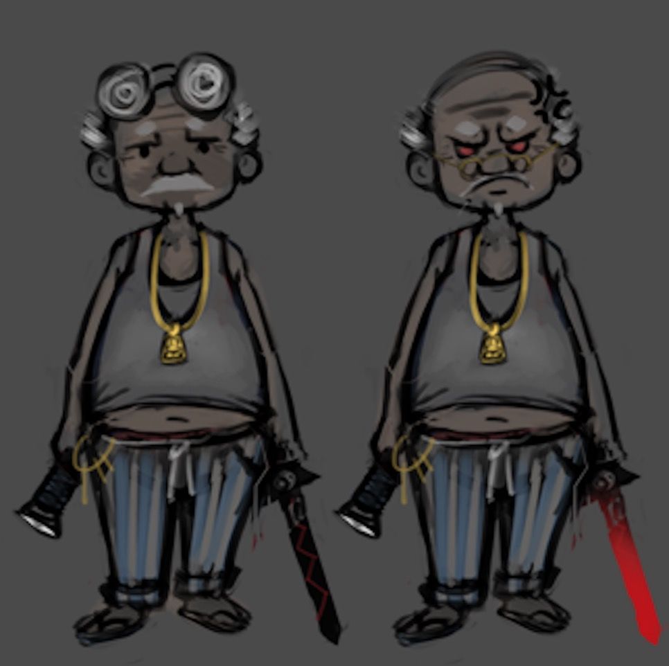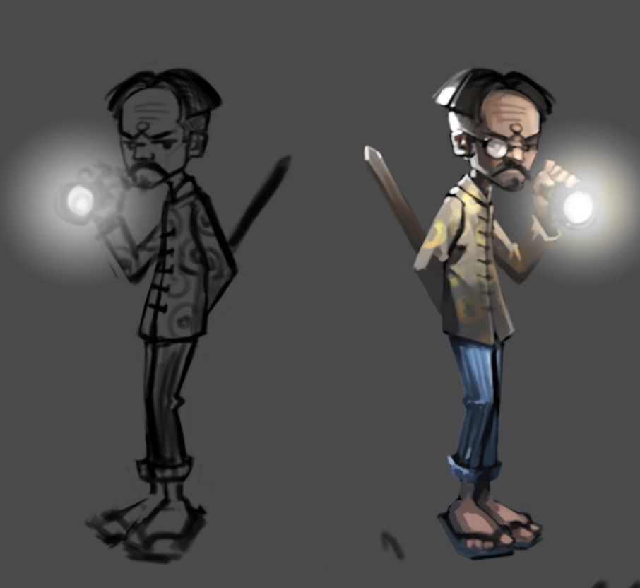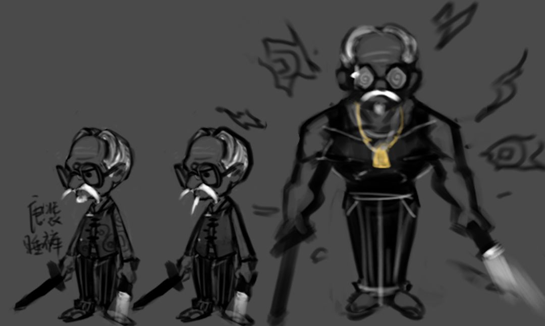 经过头脑风暴之后,辛勤的美术大大,兢兢业业,画了好几个版本古董店老板——老黄,给大家看
