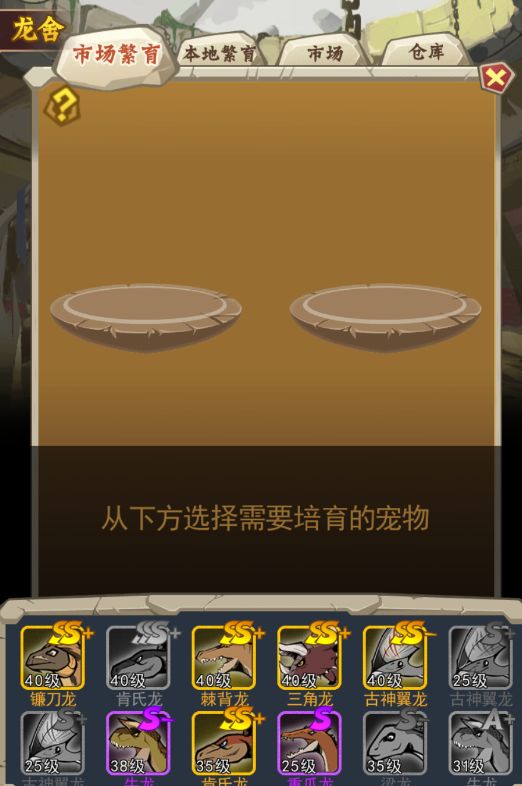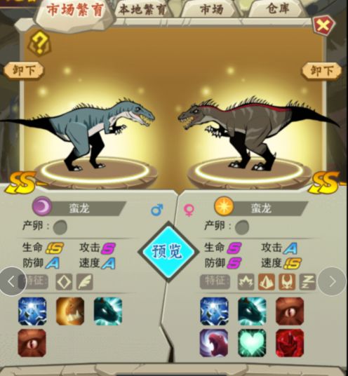 市场繁育:选择一条满足繁育条件的恐龙,进入市场,寻找合适的对象进行繁育;