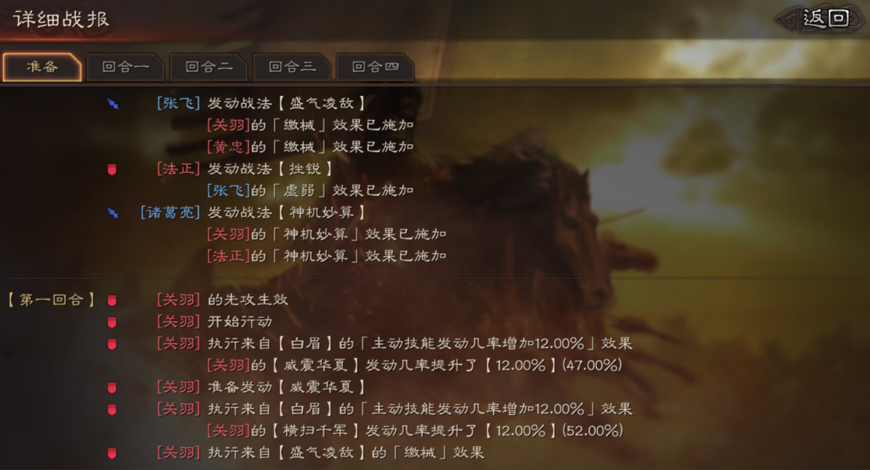 结合张飞关羽的武力值、速度值、以及战法输出能力,不难发现,张飞在桃园盾中更加适合作为输出,让关羽携带“白眉”加“落凤”反而会是更合适的选择。