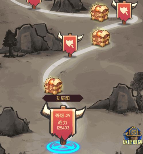 远征位于村落界面的上方,达到灰石丘陵1解锁远征功能。