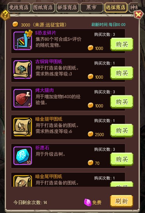 5、远征的对手、奖励和远征商店都会在每日的0点刷新。