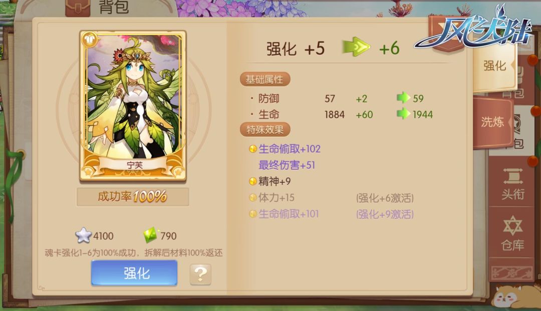 魂卡拥有的基础属性和特殊效果都可以附加到角色身上增强实力,魂卡还可以通过强化、洗炼进行提升。