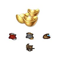 元宝*500,米*10,麦*10,山泉水*10,运粮车*1;