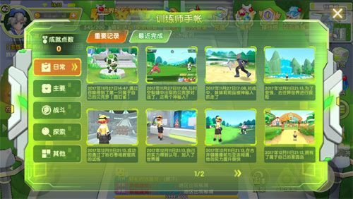通过点开手账可以查看自己最近的成长记录,完成相应的成就还可以获得丰厚的奖励。训练师手账里可以看到日常、主要、战斗、探索、其他这几种任务,可以及时查漏补缺,完成相应任务即可获得活跃度奖励,训练师记得每天及时完成指定任务哟。