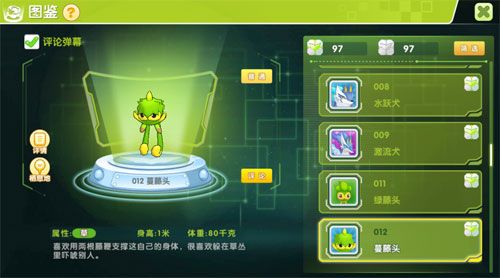玩家现在打开图鉴里的评论功能后,会滚屏播放其他玩家对这只精灵的评论内容。精灵的个体、努力、种族等属性都可以进行评论,且在弹幕轮播滚动给其他玩家查看,非常有意思的功能,给精灵贴标签作评论,同时也能看到其他玩家的精彩留言和评论。