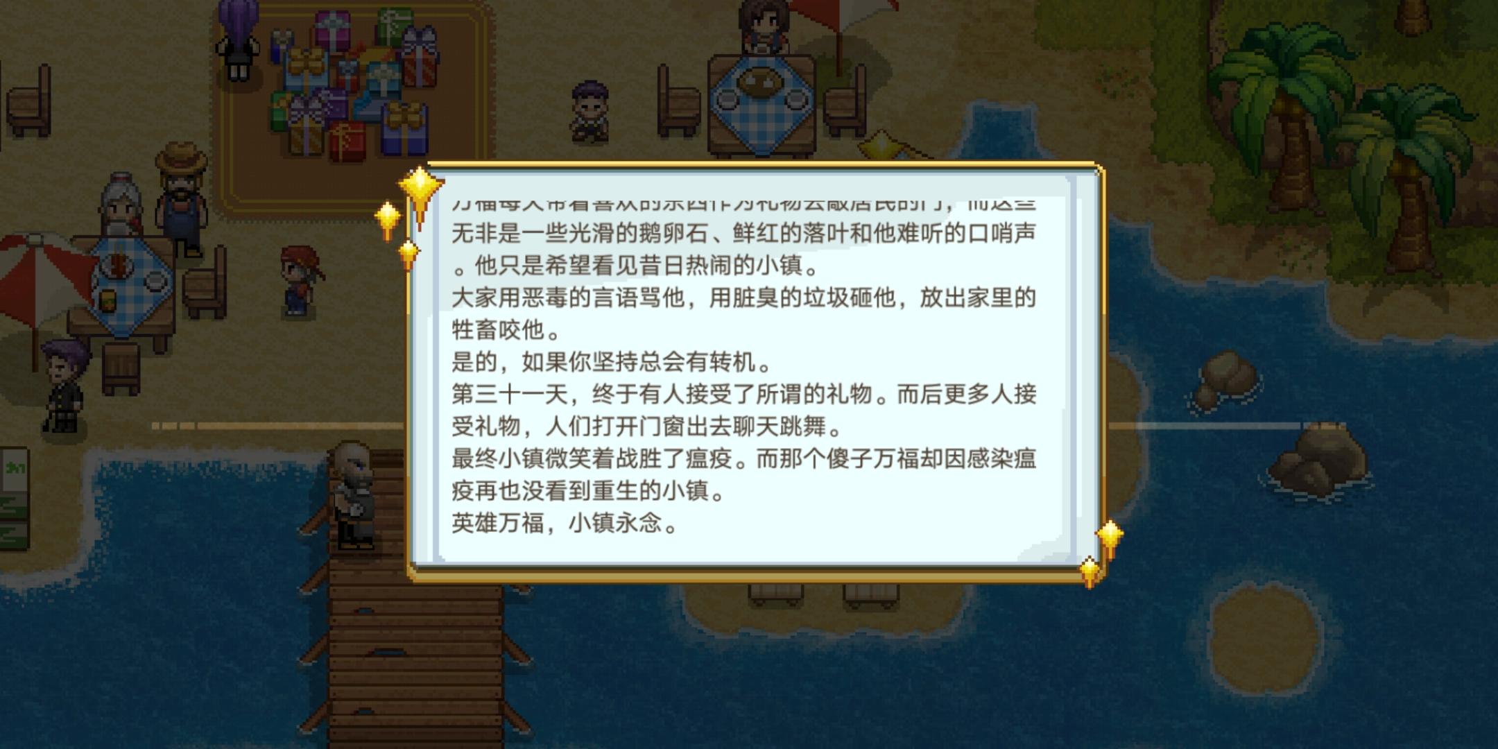 只能带着所有礼物离开这海滩(重新跳到礼物堆里右框仍然有拿走的物品,但是不能再拿走)