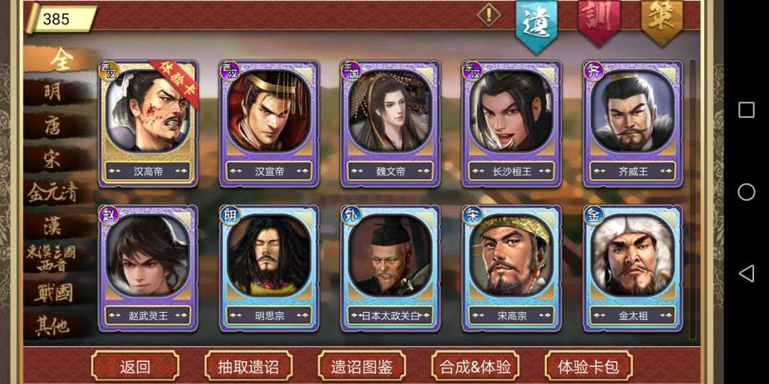 刚入坑的萌新,运气比较差,前面还用了些谋略点,现在拿到两自选。我是换帝卡好,还是拿五行好?