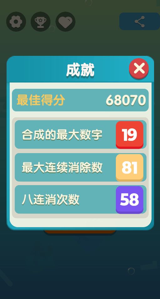 玩家通过点击方块上的数字使其数字加一,与周围三个以上相同的数字合并并且数字加一,每次未合并的点击消耗一点生命,成功合并的点击增加一点生命。