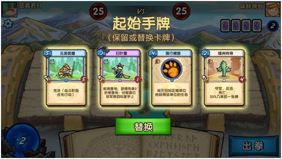 1、进入挑战,来看下我们的先手卡,根据需要选择是否抛弃重新选择卡。