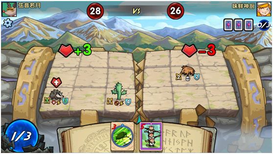 第3回合一定几率出“533味鲜居伙夫”(登场,所有其他友军+1/+0),或者出“424味鲜居厨师”(登场,所有其他友军+0/+1);