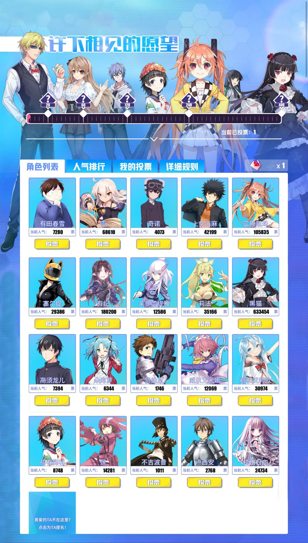 就不要错过向喜欢的角色投许愿卡的活动!