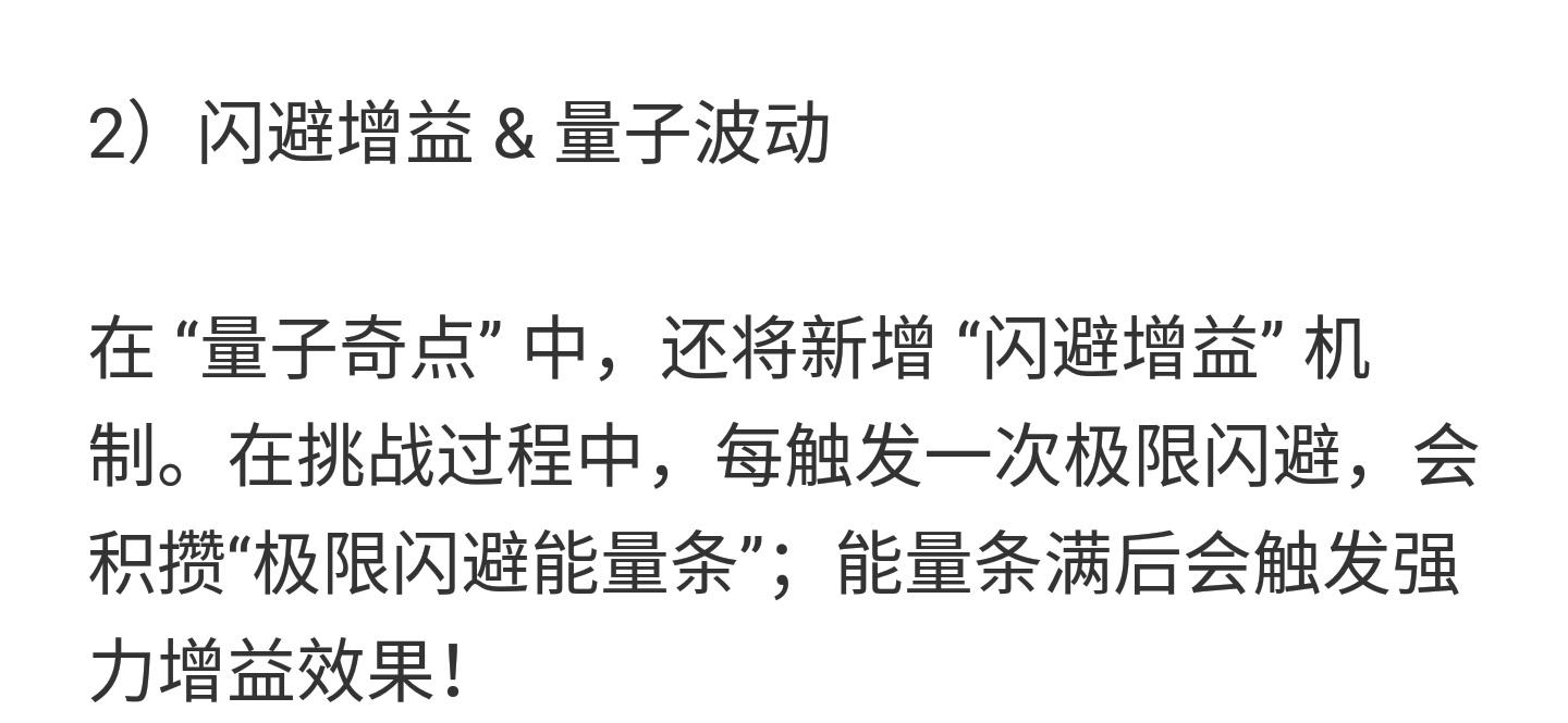 在新深渊量子奇点中增加极限闪避能量条,满了有强力增益效果!