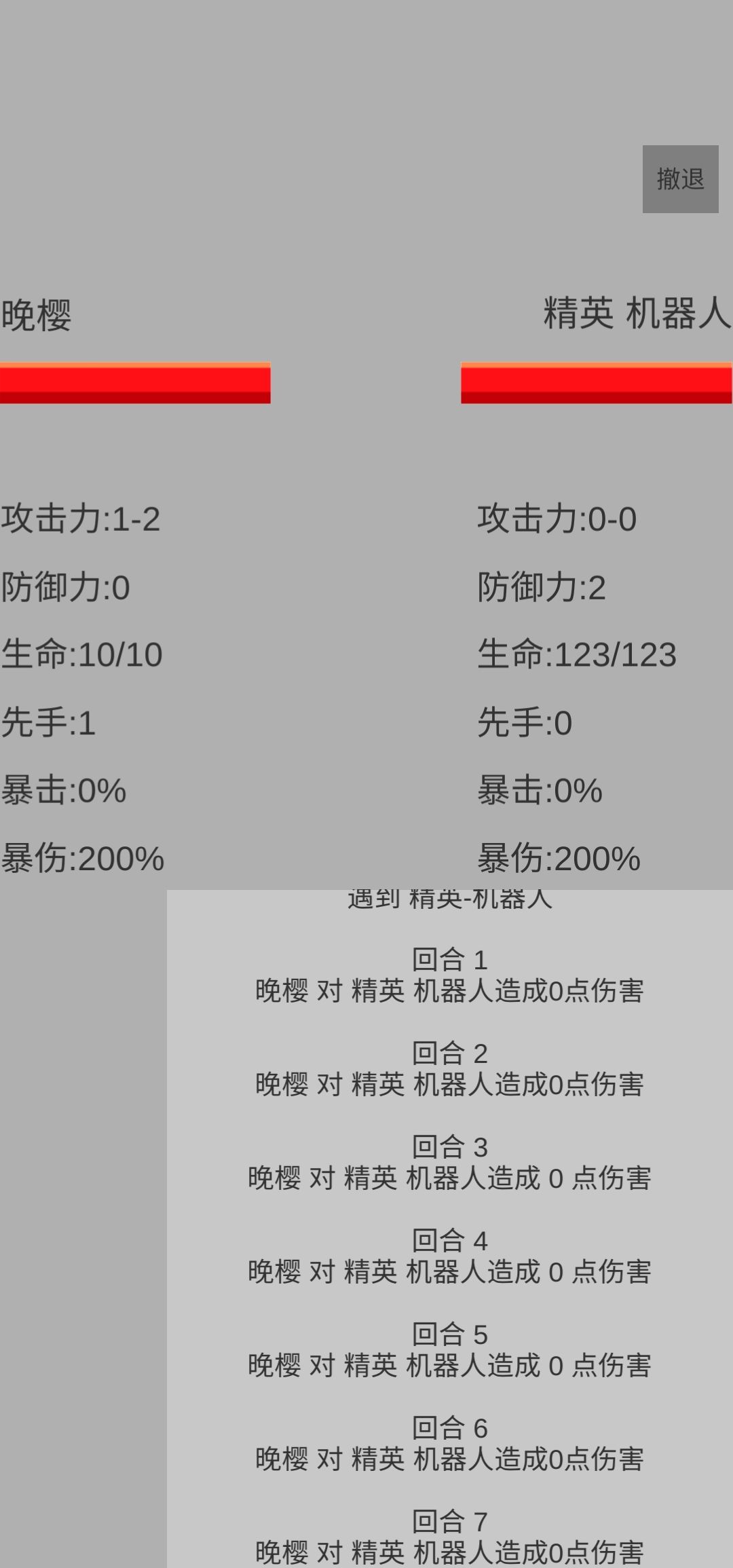 这样的 太死板了吧 打不过的他 还打不死我。只能撤退了又重进。运气好的话就遇到打得过。运气不好要点好多次。亲 爱不起啊