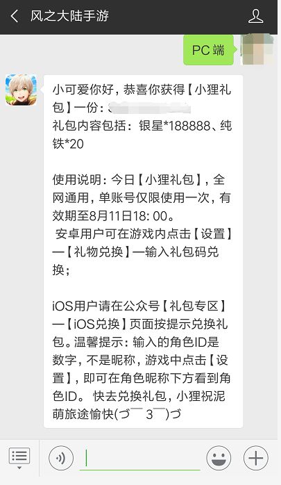最后,小狸为泥萌送上今日福利。请在公众号输入“PC端”,即可获取今日的小狸礼包: 银星*188888、纯铁*20