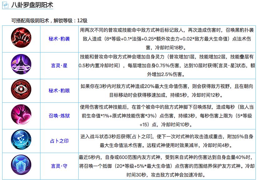 中间位置:秘术·豹袭、秘术·豹眼、占卜之印、言灵·星、召唤·炼狱、言灵·守。