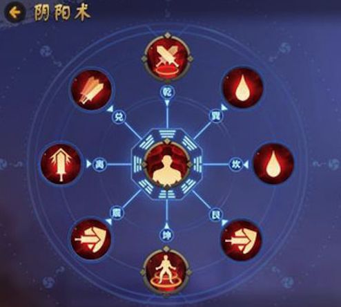3.三个被动技能阴阳术的位置:三个被动技能阴阳术位置,每一个都有种不同的选择。