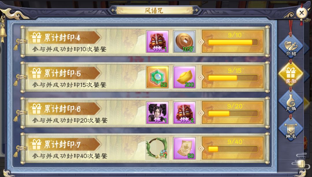 在风雨咒联动中玩家可以通过成功封印20次饕餮来获得苏兮整卡。因为每天最多协助10名好友进行协助,所以玩家最快两天就可以入手“小妖孽”。