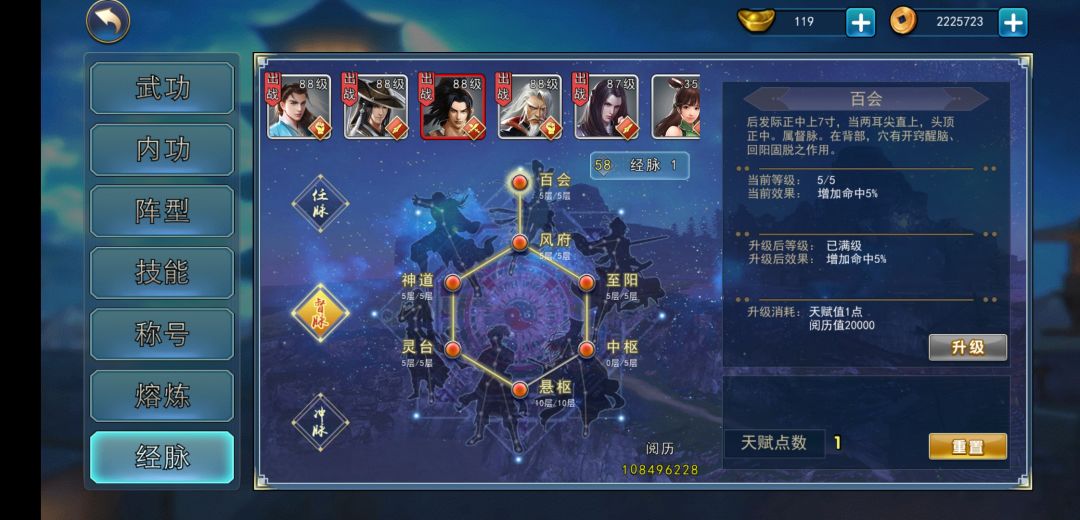 补充一下刀的经脉,爬塔用的,,打擂台也可以点罩子。经脉的话缺暴击点暴击,不缺的话点攻击,后面100级都点得满的