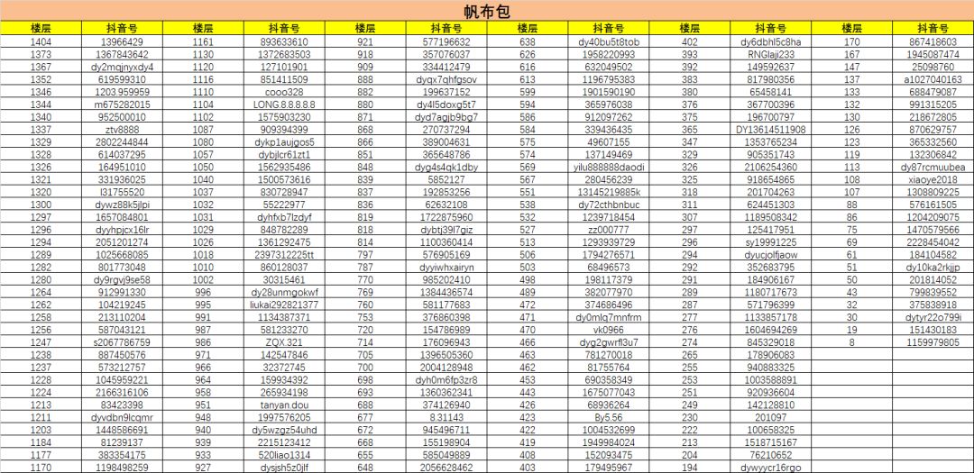 【中奖名单】丨“双十一”活动抖音评论中奖名单