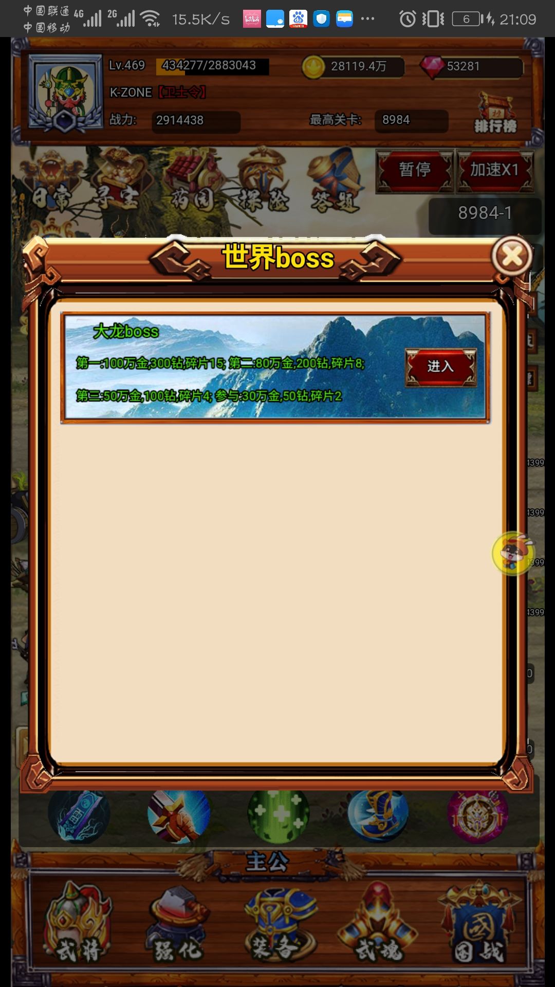 卡包:三卡里头,月卡开推图加速,在线挂机流推荐;终身卡能开通扫荡,目前仅针对武将本有用;白金卡武魂x5很给力。