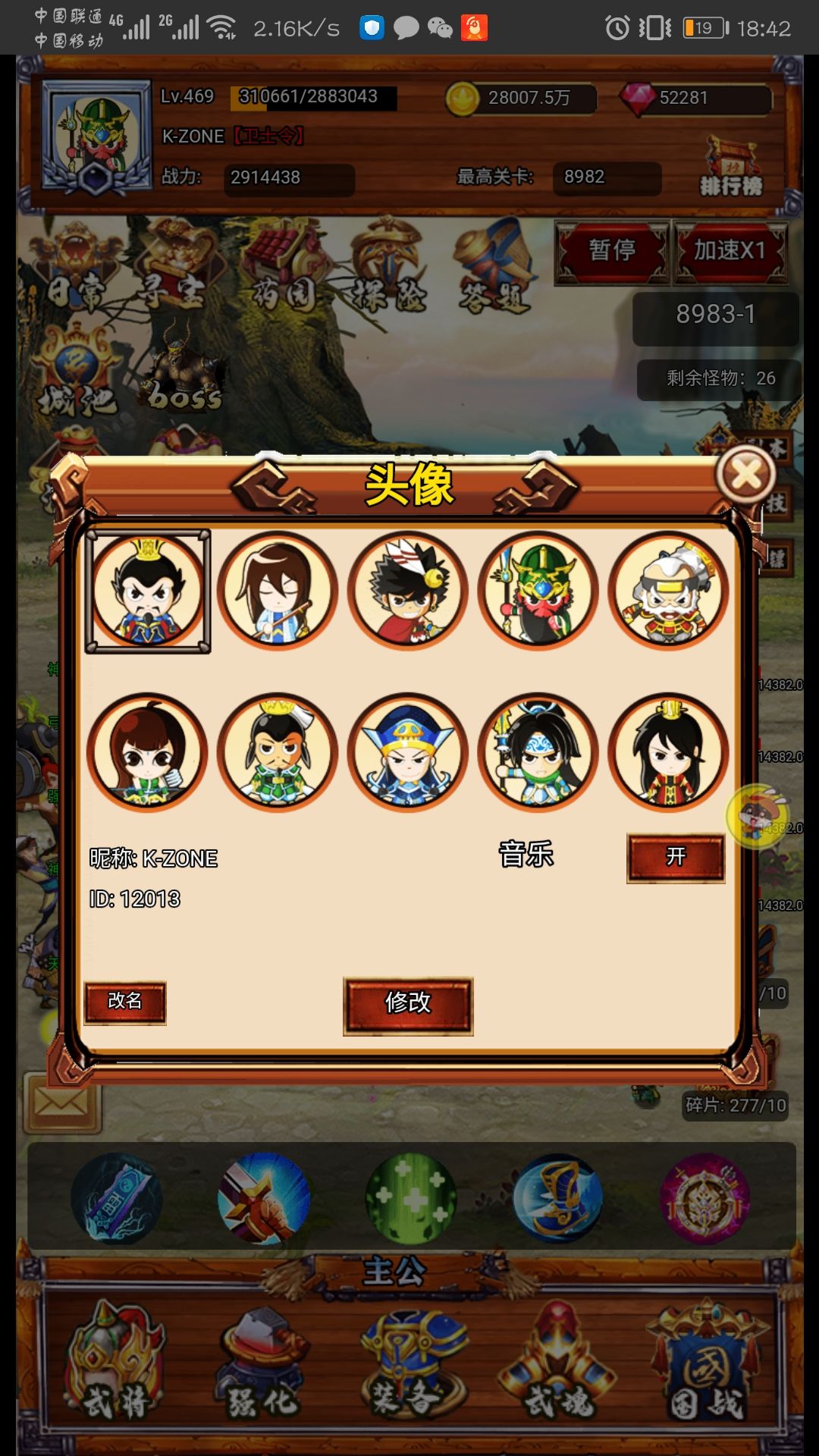 可选择十个头像,id自己可以稍微记一下,好方便发生bug的时候找群里管理或者客服反馈。改名第一免费,第二次给100钻