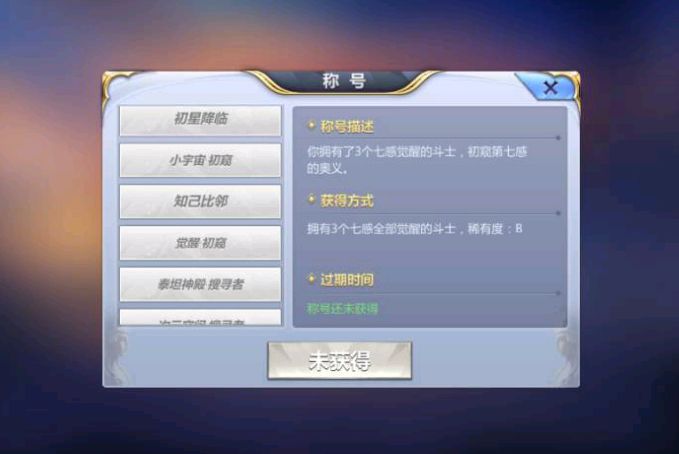 就如当你拥有了三个七感觉醒的斗士,就意味着已经初窥到觉醒的门径,会获得觉醒-初窥称号。这就意味着你在觉醒方面已经初窥门道了~这个称号也是很棒的,还容易获得,也是给玩家的小福利。