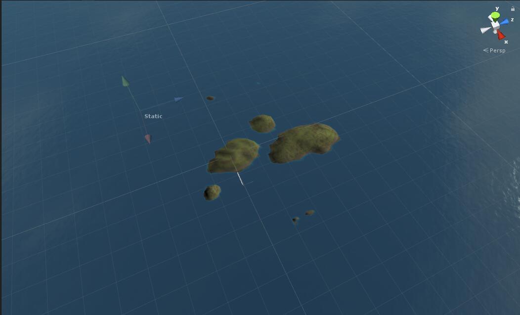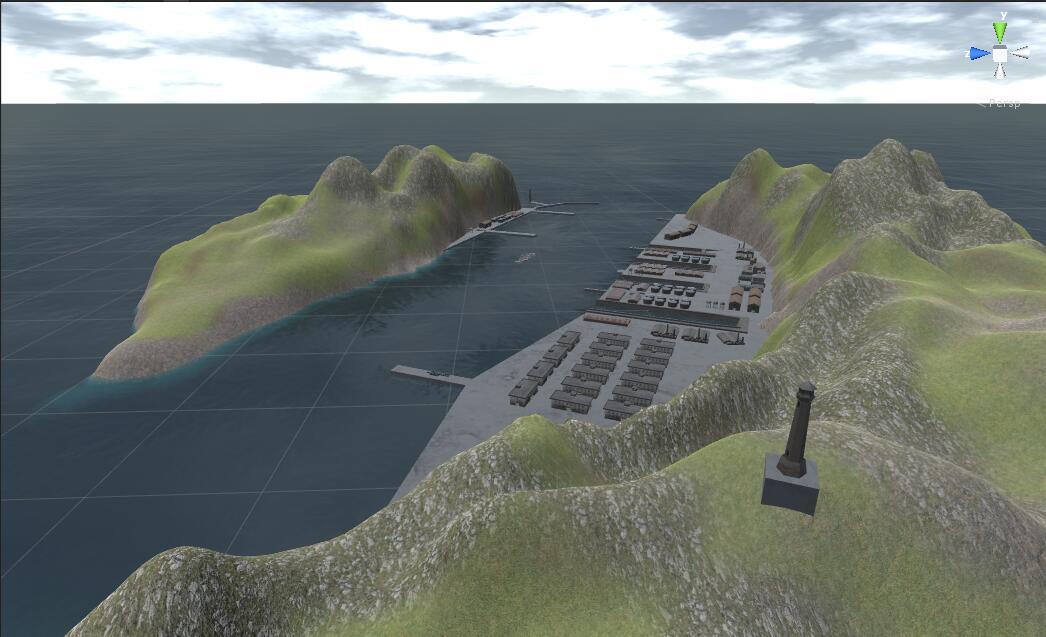 由于目前的对战主要为测试战斗系统,其主体是在一块空旷海域进行的战斗,这导致了目前的战斗完全趋向于火炮射程的比拼,这并不是我们希望看到的现象,因此我们尝试制作了对战时的地图,并计划加入到最近的更新之中。用于测试地形会在游戏中带来的影响。