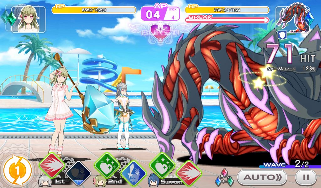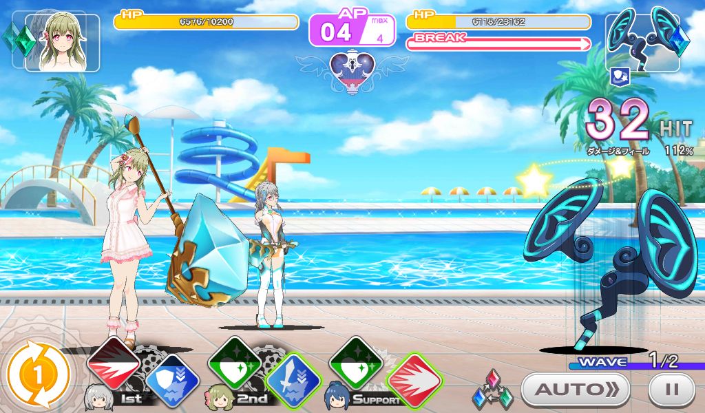 首先第一关的怪第一次给你减防御60%之后就给你上减少70%命中的DEBUFF,这些的不用管,但是你要有双奶打第二关的龙才比较稳。第一关就是一个品质不合格的充电宝,充电断断续续的。运气好30%命中也打中了就多点能量运气不好就靠切换人物获得“电量”