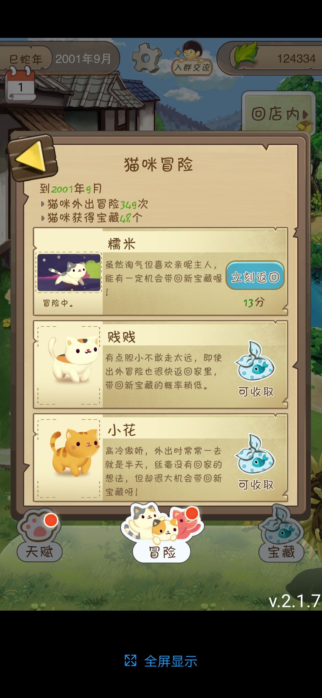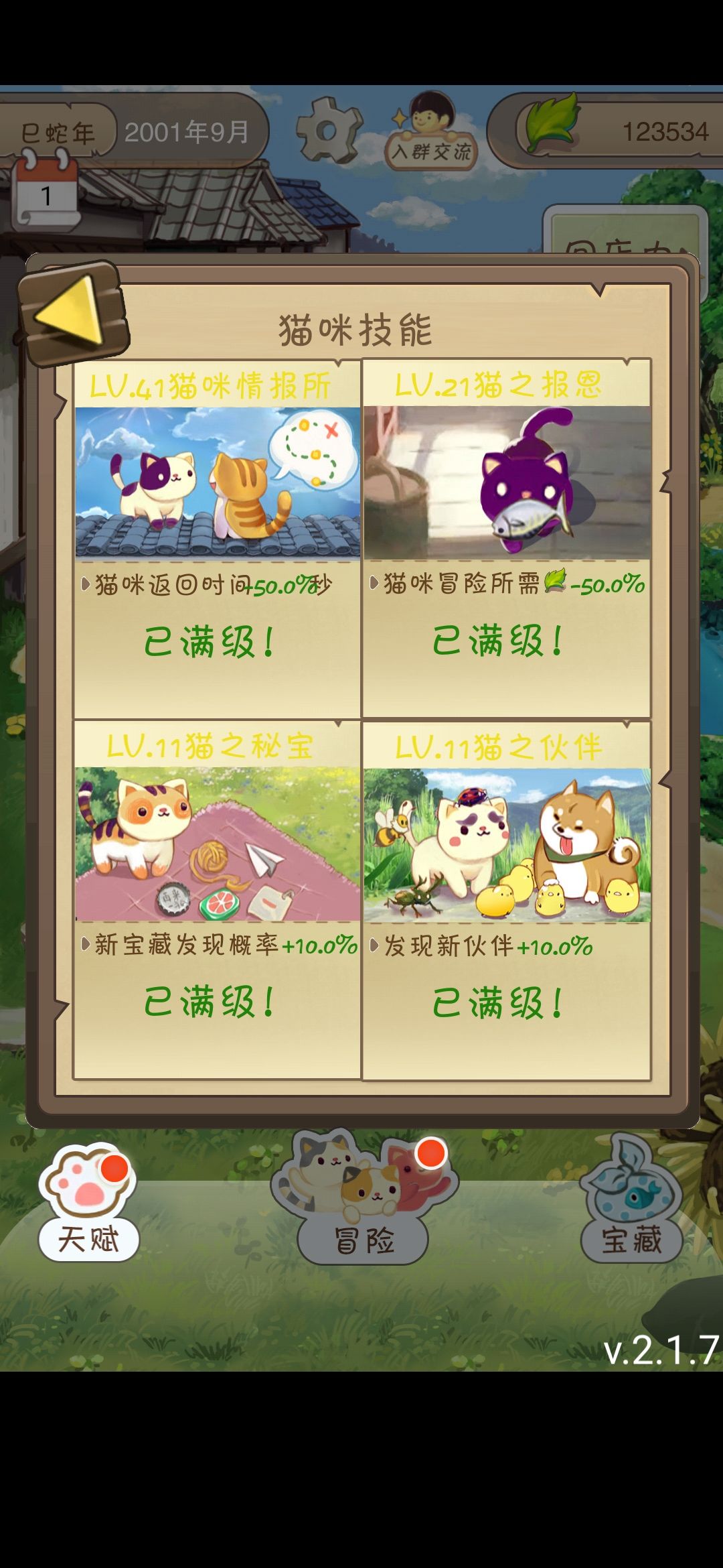 6)关于天赋每次升级需要“猫薄荷”,“猫薄荷”可由猫咪探险带回来。