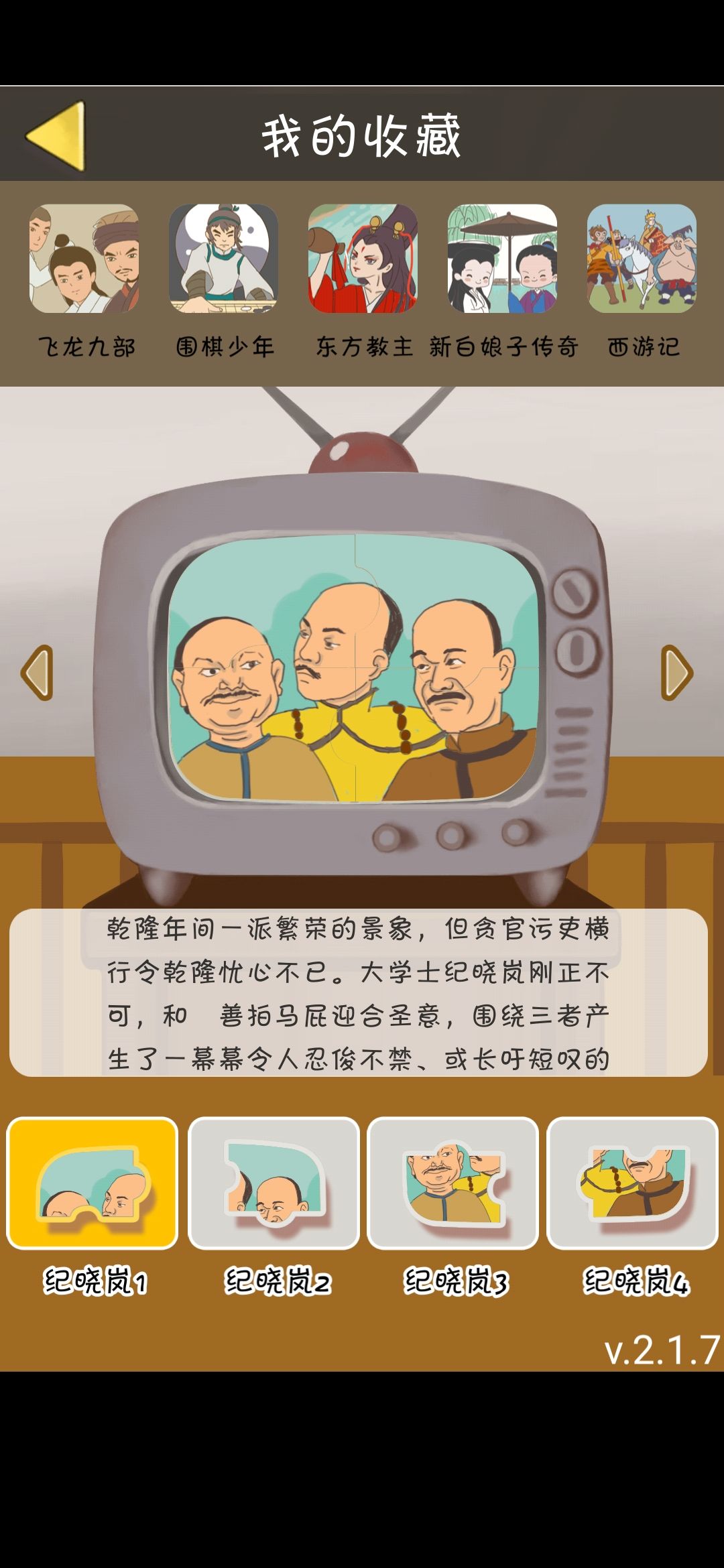 5)关于电视节目关于“电视节目”,真的要表示好评啊,里面有很多的故事,像拼图一样,每收集完4块拼图碎片就可以合成,且合成过的图片不会再次出现(注意!是合成以后的图片不会再次出现。)