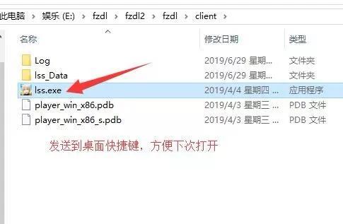 步骤3:打开文件夹的Client文件,双击lss.exe即可,为使用方便,建议发送到桌面快捷键。