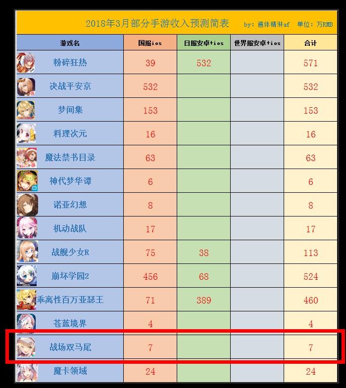 目前晨之氪在苹果数据最好的为《战场双马尾》,三月流水仅有7万,按业界公允,安卓营收为苹果两倍,记14万,三月整体仅为21万,Q1整体不超过100万。苹果分账为3:7,安卓5:5,扣除税费,运营,营销,人工,则利润为负。