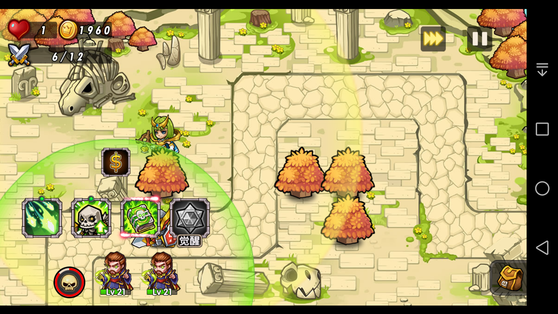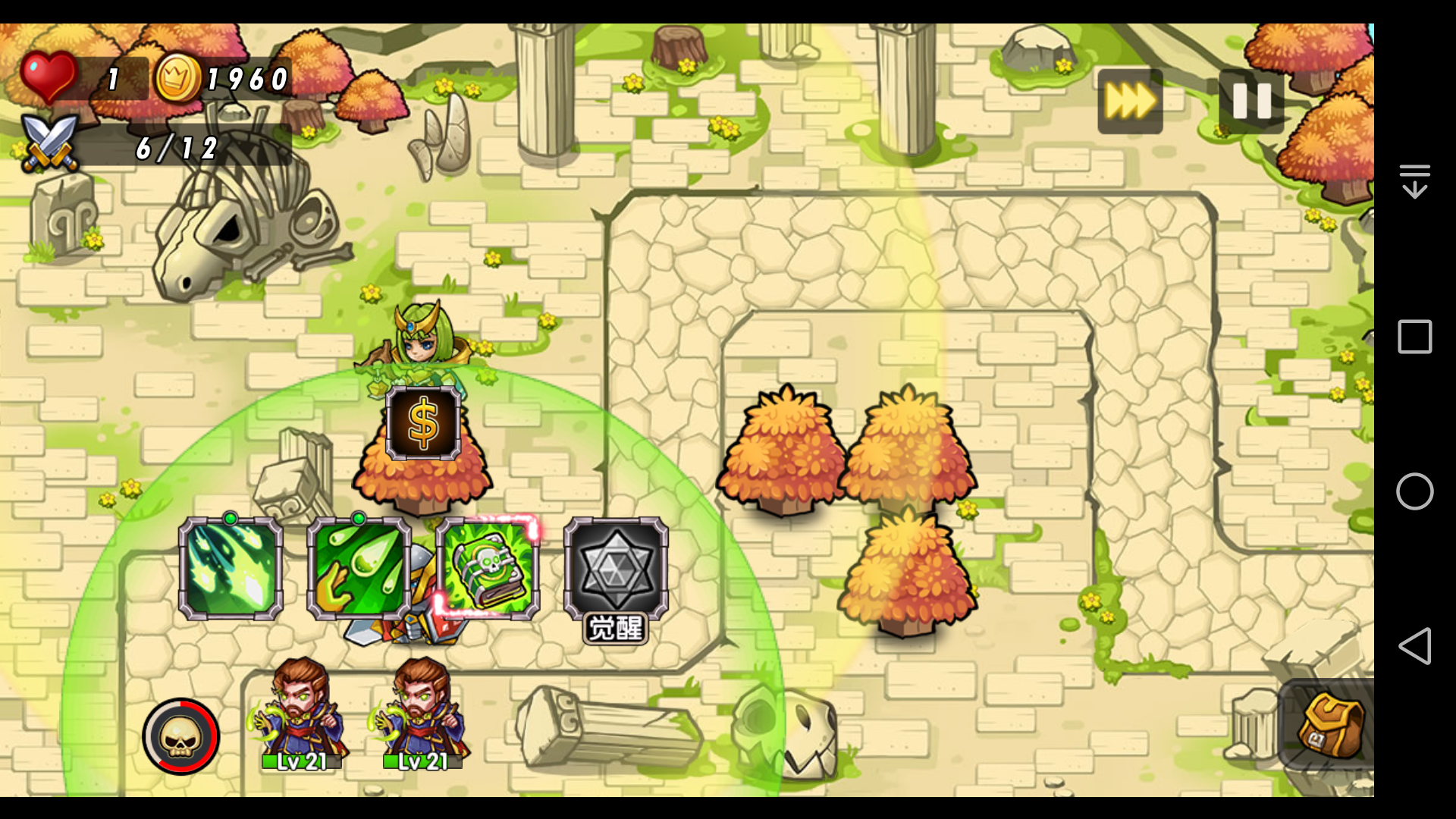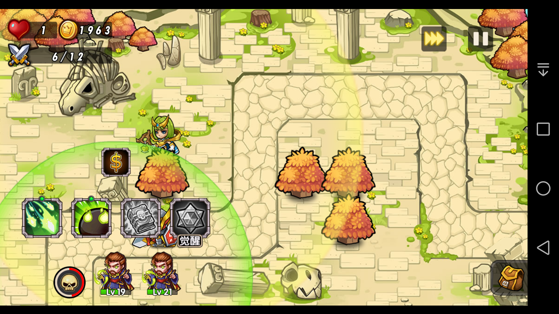 2.如果其中一个灵能法师点升级加速技能,另一个点其它技能,那么到第六波结束时是正常情况,如图一个19级,一个21级。