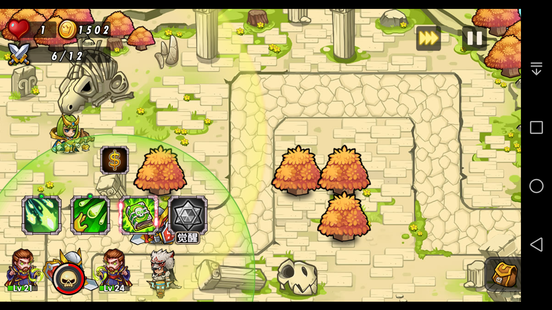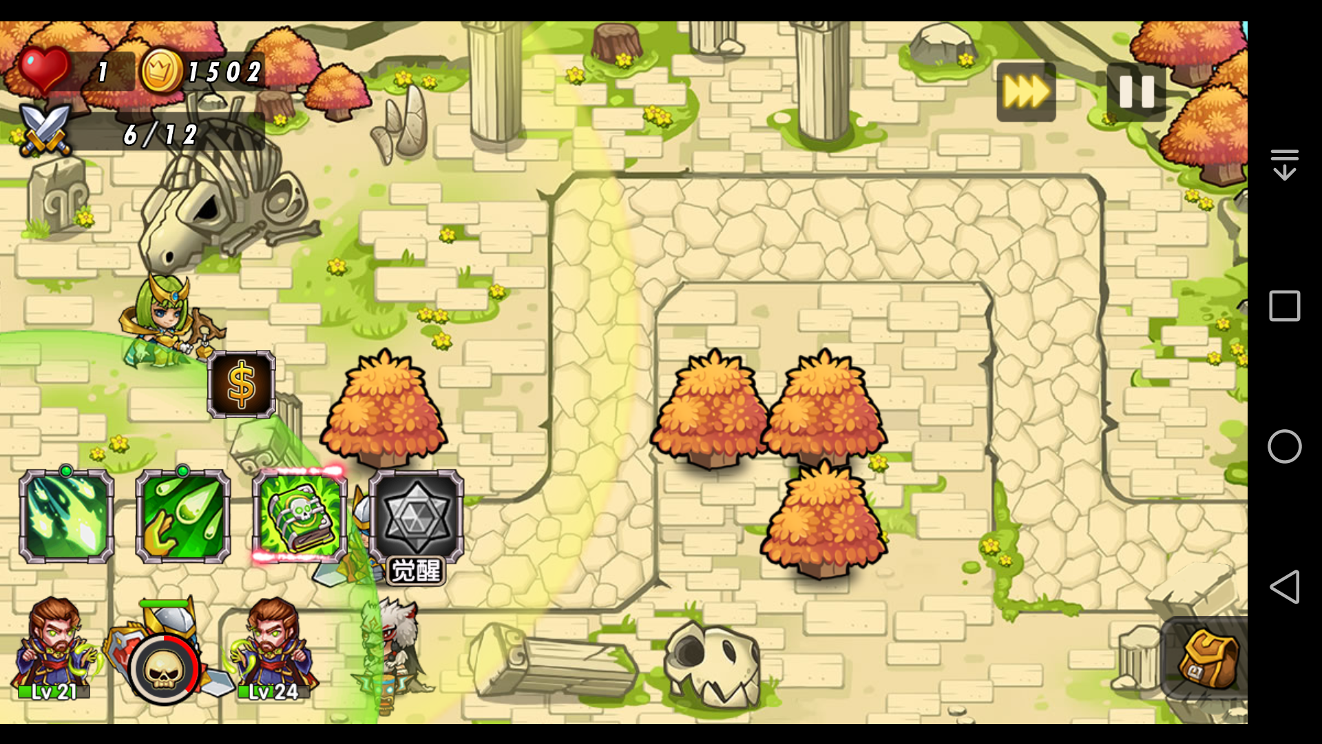1.如果两个都同时点升级加速技能,到第六波结束时,一个升级比较快达到24级,另一个只有21级。