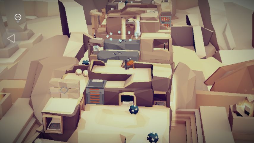 第一个关卡就是一个沙漠迷宫,游戏小怪物不能碰,一碰就死,还有些石头可以攻击对玩家有主动性攻击的怪物,有些装置可以穿越现实与未来,就是关卡切换,未来的场景是废弃的,游戏目的就是激活石像,玩家死亡会扣水晶,水晶用完了并不代表游戏结束,而是进入一个小游戏,收集所有水晶后才能继续玩之前没过的关卡