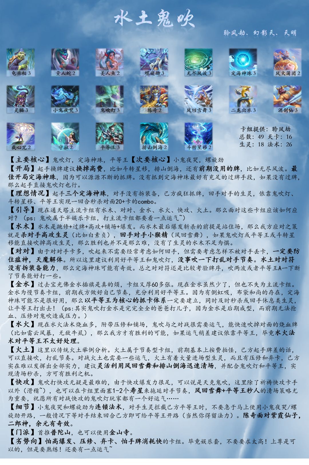 传统鬼吹都是带普陀山,昨天我玩基友的号喵了一下她等级不够买普陀山(要20级),所以萌新前期可以选择金山寺,后期想换普陀山也可以换。需要注意的是普陀山需要高修为才能奶的起,而你使用金山寺,对手会把高伤害卡留到下回合(金山寺效果没有了)再进行攻击。