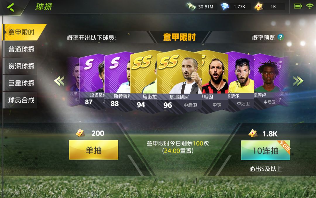 进入限时球探功能,玩家可花费不同资源,抽取心仪的队员。抽取低等级未签约队员后,还可通过球员合成功能对当前球员进行升级,有极大概率获得一个当前品质以上的球员。