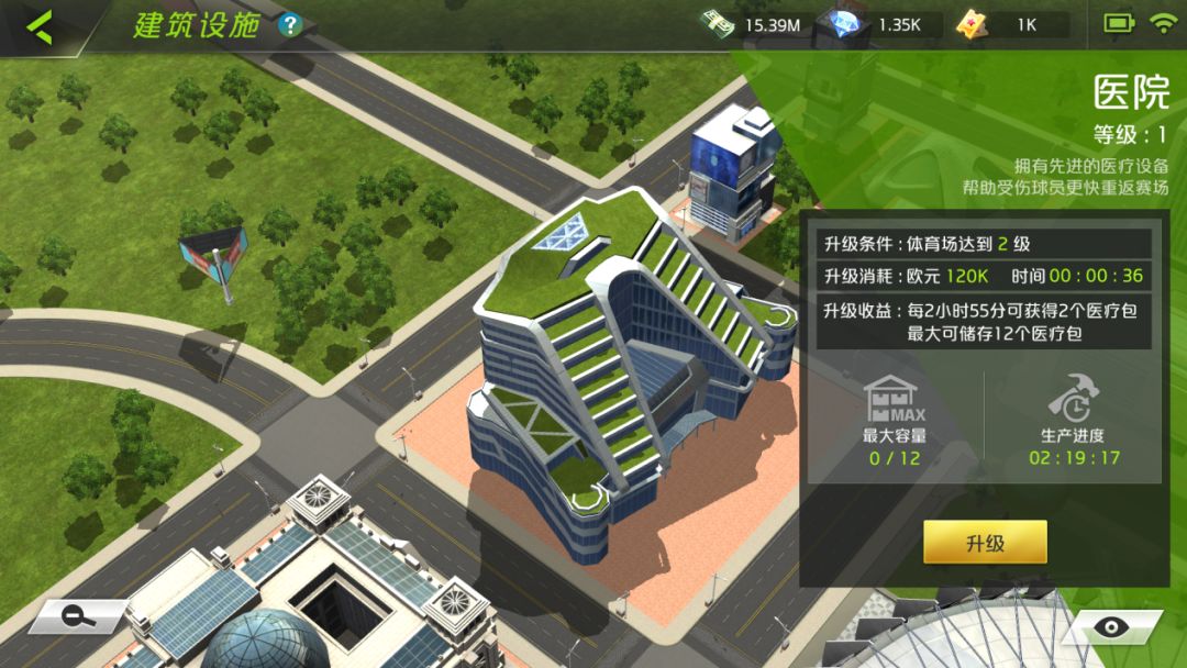 当球员受伤时,医院可提供科学治疗护理,对其升级可提升产出医疗包的效率。