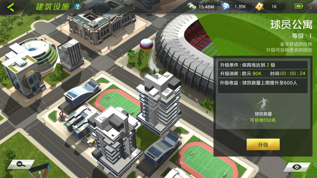 球员公寓可供球员豪华舒适的生活环境,对其升级可提升容纳球员的数量上限。
