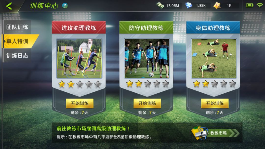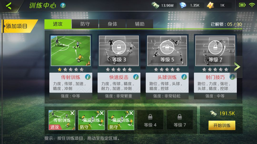 训练中心为俱乐部提供专业的场地与人员,帮助球员提升各方面能力,升级设施可以解锁更多的训练项目,让球员接受更广泛和更具针对性的训练,从而更快增强球员实力。