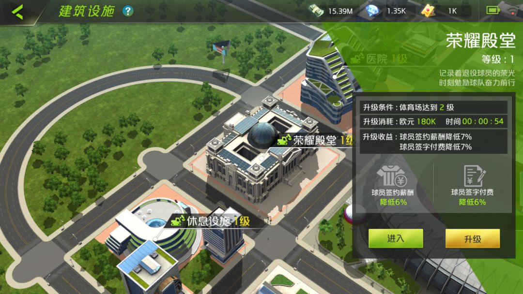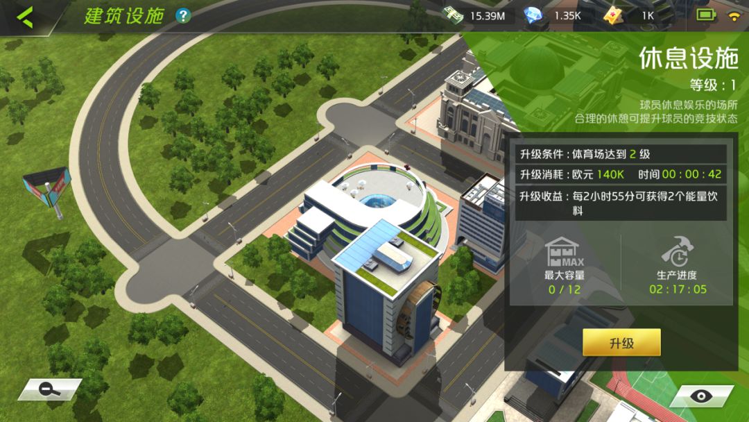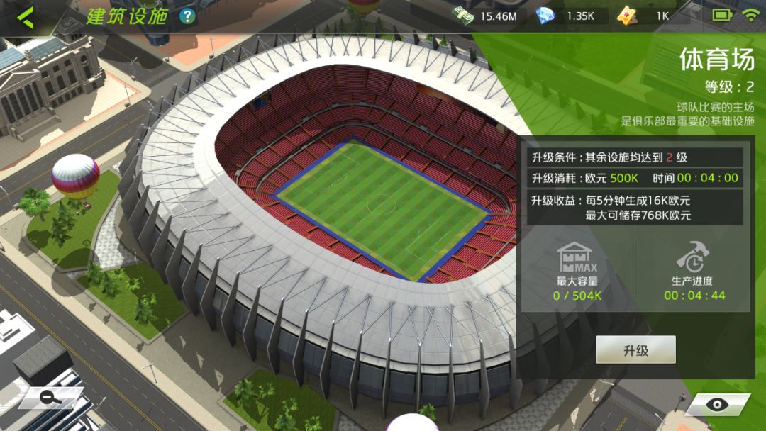 其中,体育场作为球队主场,是俱乐部的基础设施 。一方面升级体育场可供更好的赛事体验,另一方面还可产出高额欧元,以供玩家进行球员签约、设施升级等各项经营活动。另外,体育场作为整个设施系统主建筑,需优先完成升级,且与副建筑之间的等级差不能超过1级。