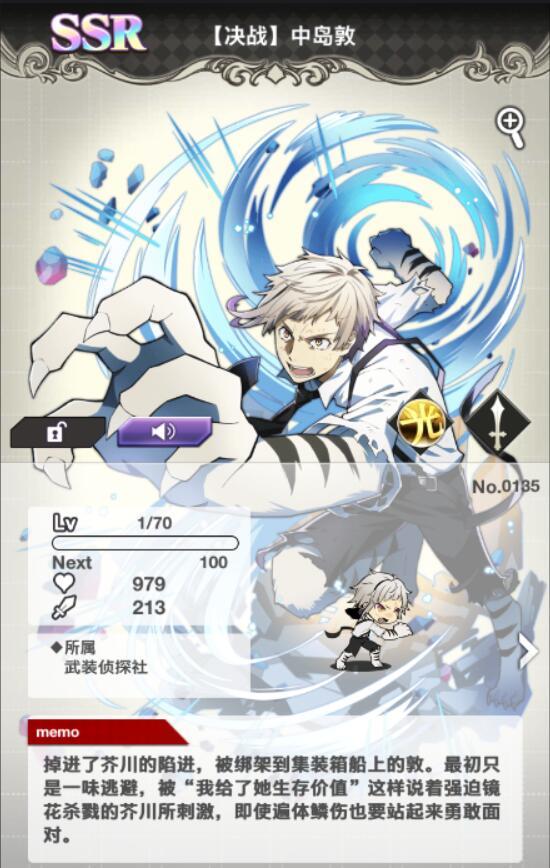 效果:若队伍中有芥川龙之介,则每回合触发。一回合,敌人造成的伤害降低85。