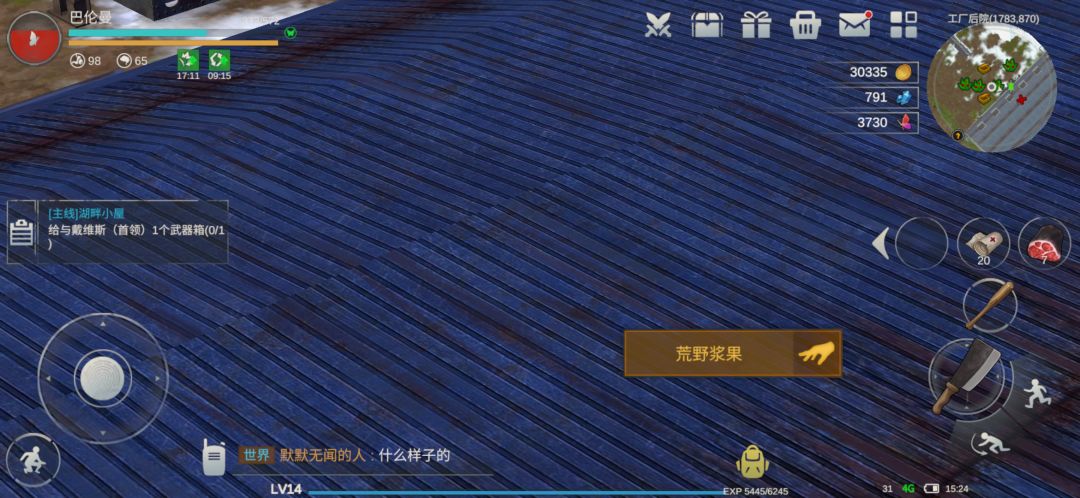人物走到厂房后面,根本看不到自己的人,只能靠小地图判断。