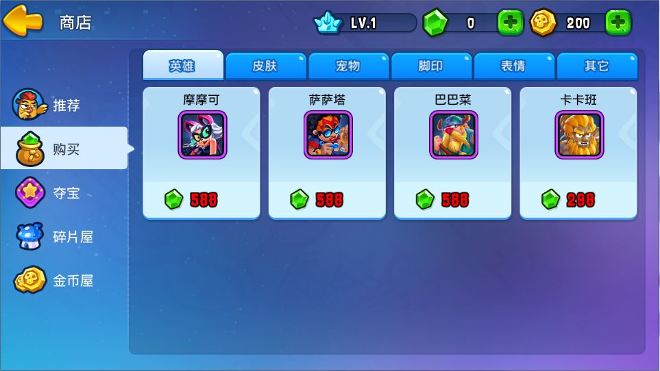 ③ 更多英雄、皮肤、宠物、脚印、表情可供选择