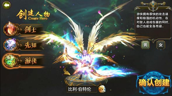 游戏职业分为:剑士,先知,游侠,中规中矩的职业配置,但是限定了职业性别对于小编来说不太舒服;