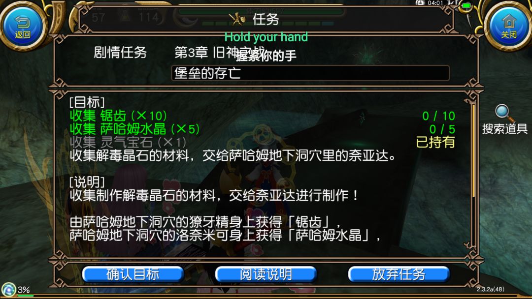 前两个材料可以在第一次去地下洞穴的时候顺手打了,之后那个灵气宝石可以在跑女帝那边任务的时候给打了