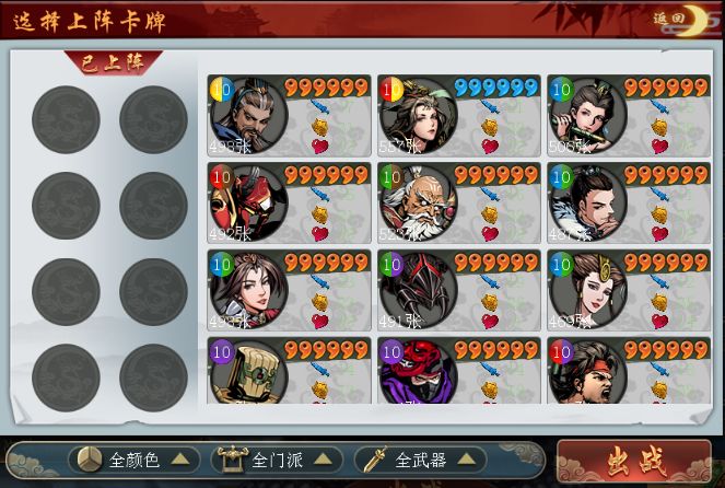 每次战斗都可以派出8张卡中的最多4张卡牌进行战斗。